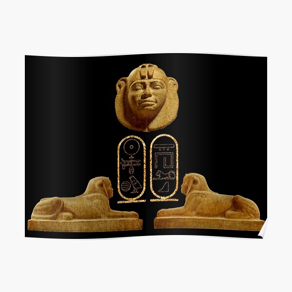 La statue du sphinx représente ici l'immense pouvoir du pharaon koushite Taharqa, dont le visage est visible. La coiffure est ornée de l'uræus, symbole de cette royauté, et le nom de Taharqa apparaît dans un cartouche sur le thorax du sphinx. Cette statue est considérée comme « une pièce majeure de l'art koushite. »